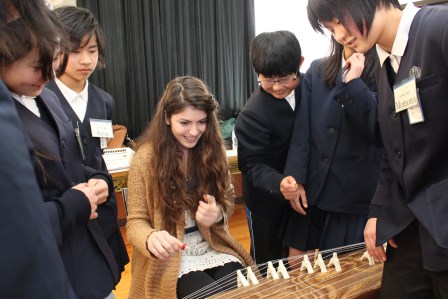| 日本文化の紹介として、茶碗やお箸の持ち方や 作法なども紹介してくれました。 |